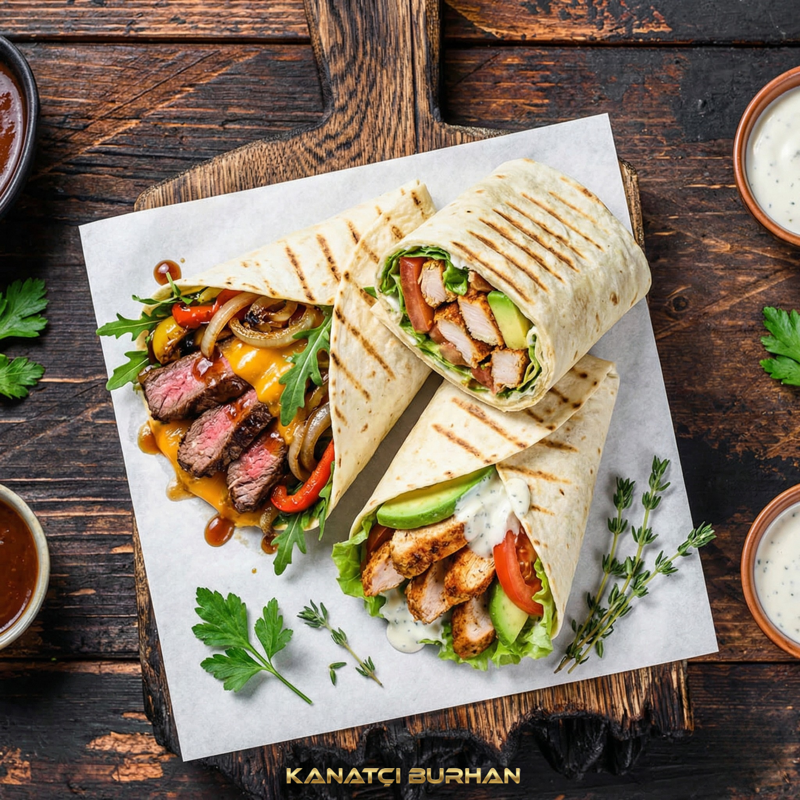 Izgara et veya tavuk, özel soslu lavaş içinde
